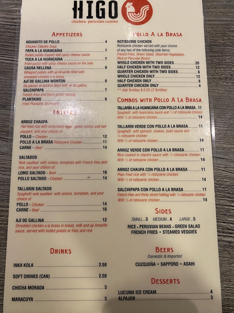 Welcome to Higo Chicken, a hidden gem located at 722 E Whittier Blvd, La Habra, CA. This Peruvian restaurant has quickly gained a reputation for its spectacular rotisserie chicken, known as Pollo A La Brasa, served with a range of tantalizing sides. You can enjoy everything from a whole chicken to quarter portions, all accompanied by robust flavors that define authentic Peruvian cuisine.